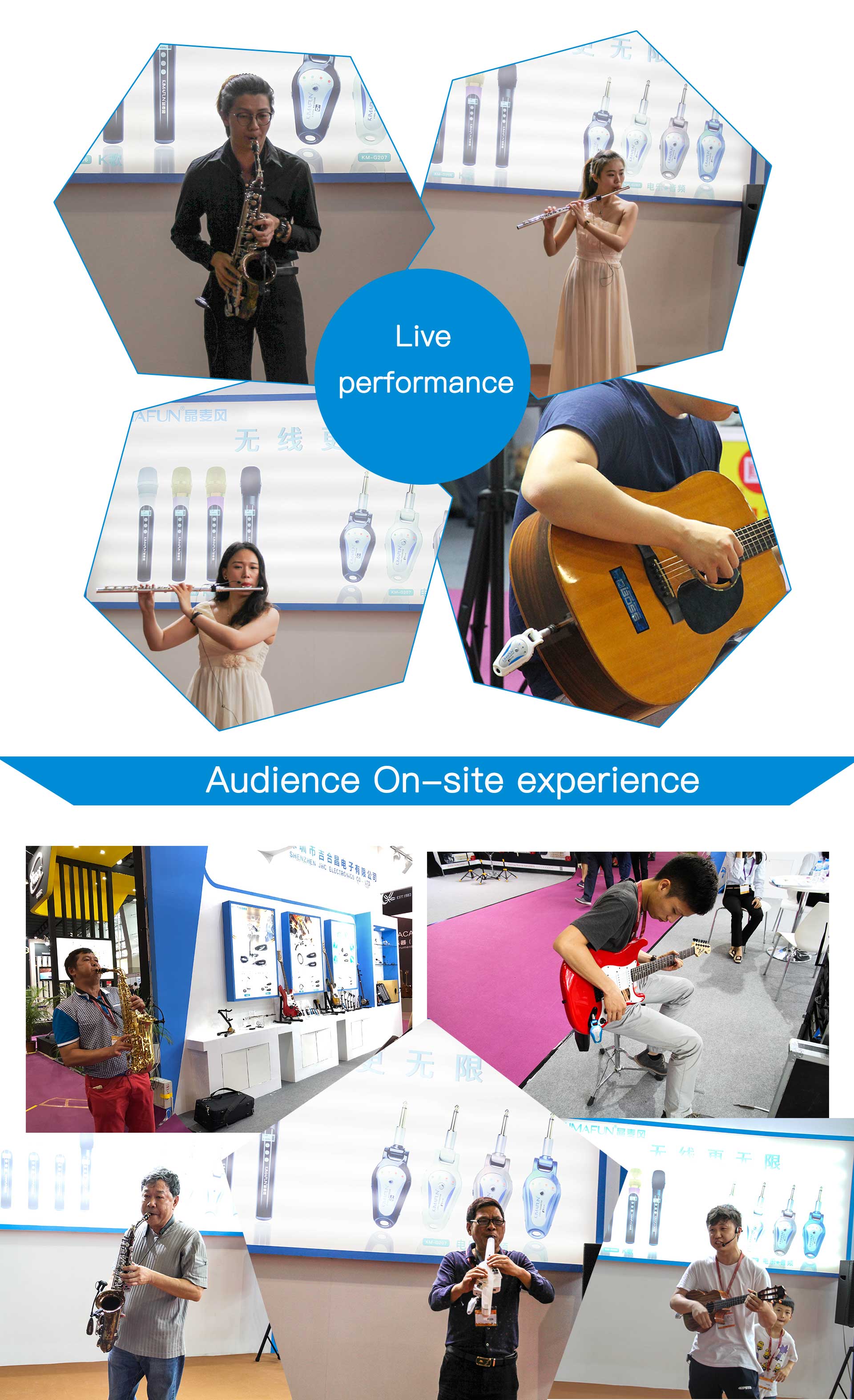 In the booth, KIMAFUN released some new products: KM-G207 wireless transmission system, wireless instrument microphones,wired instrument microphone,some wired mini microphones, which are with patent.Especially the newest laughed product-wireless transmission system, which is the most popular in the show.A continuous flow customers around the booth,many musical player experience and enjoy the products.Highly appreciated the KIMAFUN products!