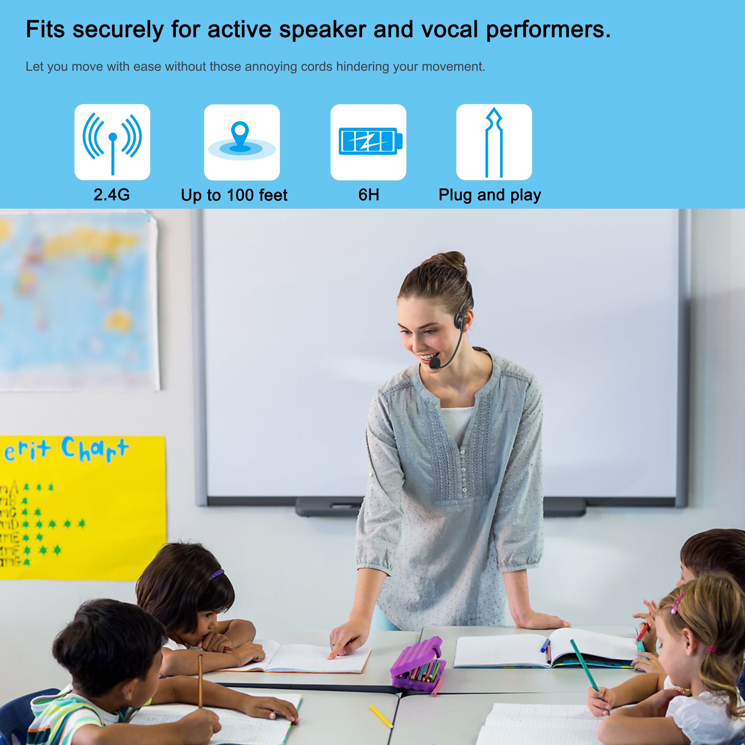 Easy Set Up: Plug and play, easy to use. Both the transmitter and receiver are powered by rechargeable batteries. Plug the headset microphone or the lapel microphone into the microphone socket of the bodytransmitter, turn on the mini receiver and the bodypack transmitter, you are ready to go. The lapel mic or the headset mic allows for hands free, you can hold the presentation materials with your hands. Mic volume can be changed from the transmitter at ease.