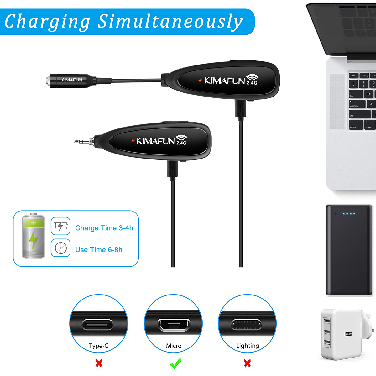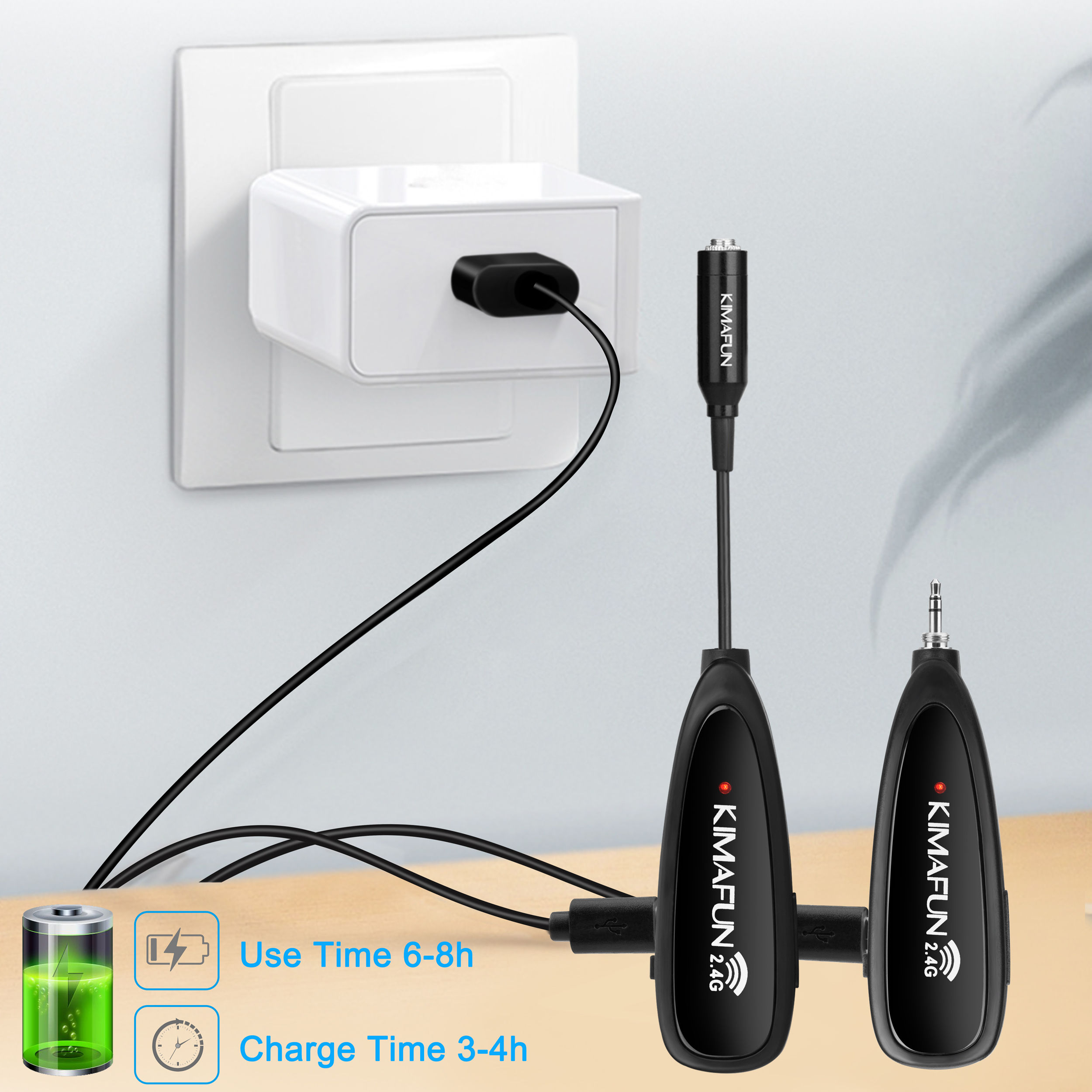 Easy Charging: The transmitter &receiver can be charging at the same time with double USB charge cable. Full battery power can work more than 6-8 hours.
