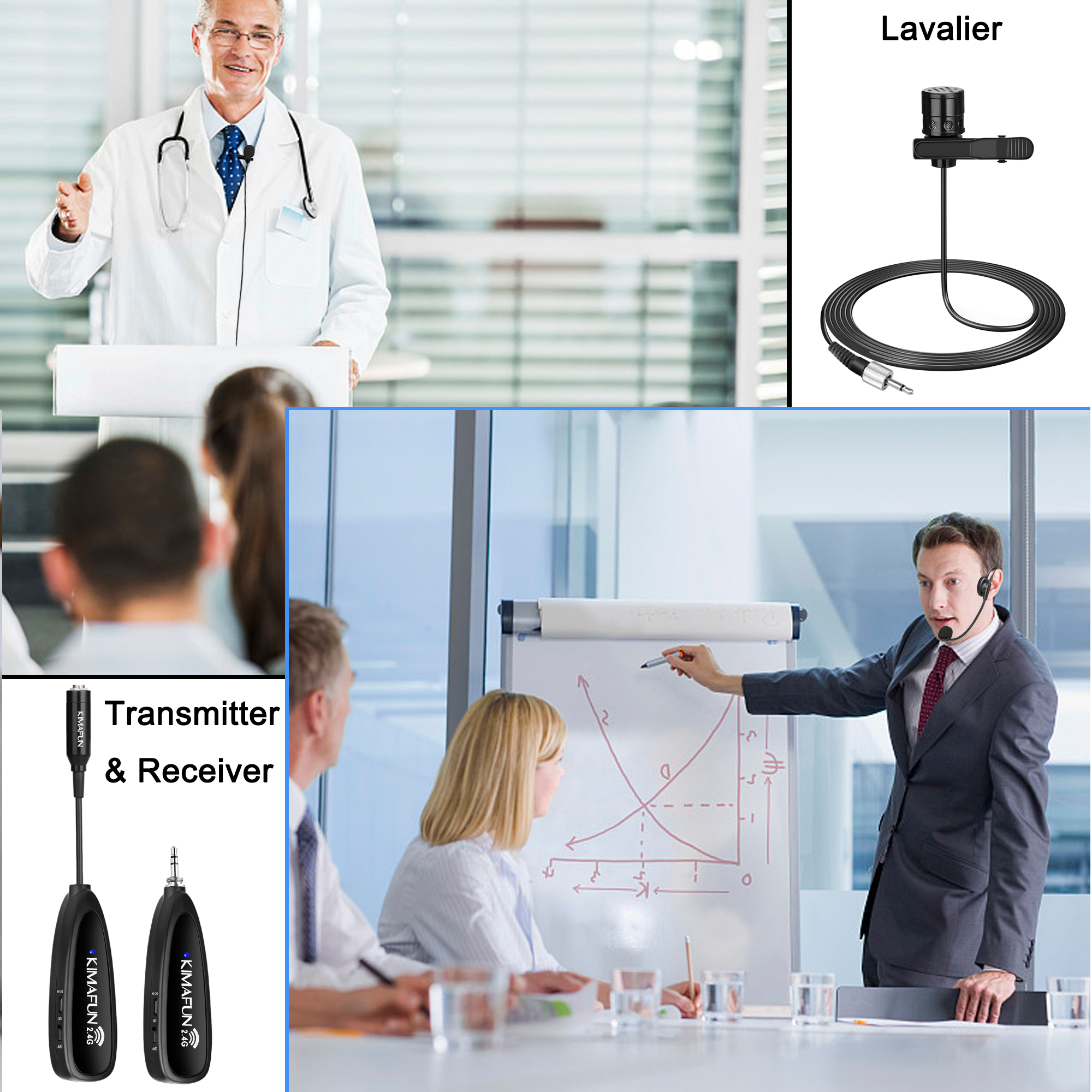 Wireless Headset & Lavalier Microphone System: Headset and lapel mic 2 in 1,use whichever style you want.