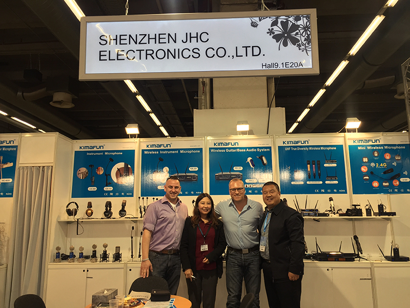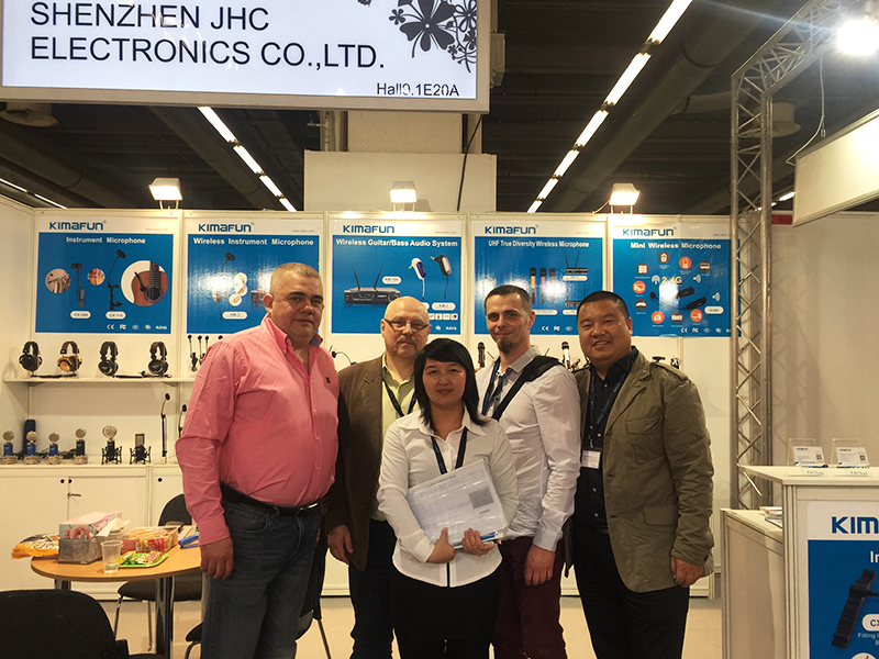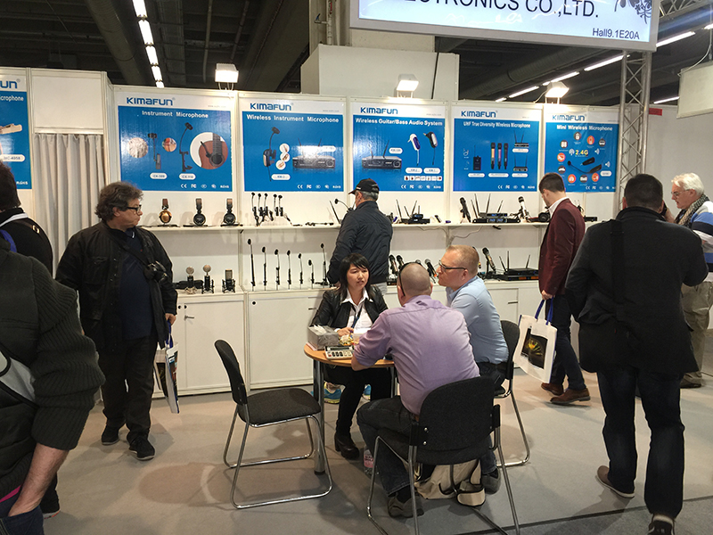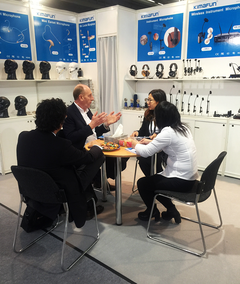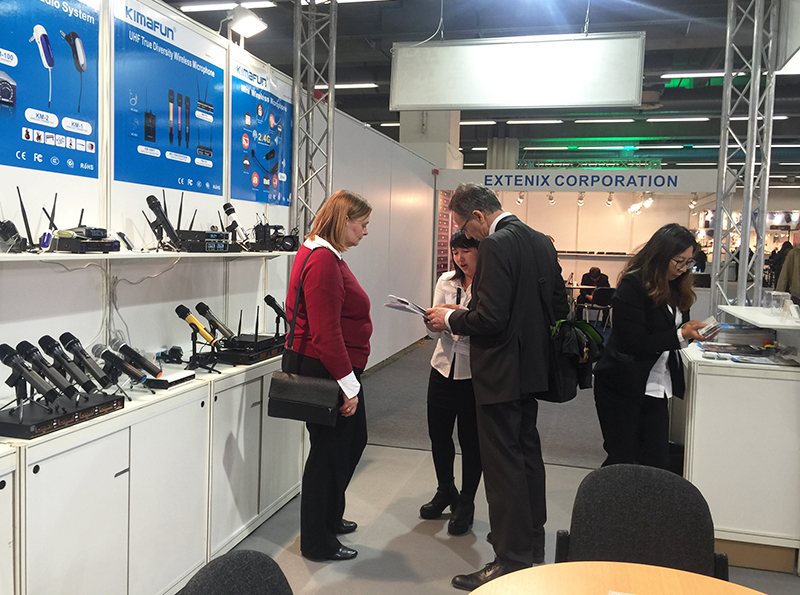 公司自主研发的真分集无线系列麦克风作为主打产品一亮相法兰克福,就以新颖的外观、高性能、高实用性、高性价比等特点吸引了世界各地客商的目光,获得了广大客商的认可。